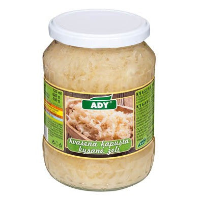 Kvasená Kapusta (Sauerkraut) is traditional Slovak fermented cabbage with a naturally tangy flavor, perfect as a side dish or ingredient for hearty meals like sausages and stews.